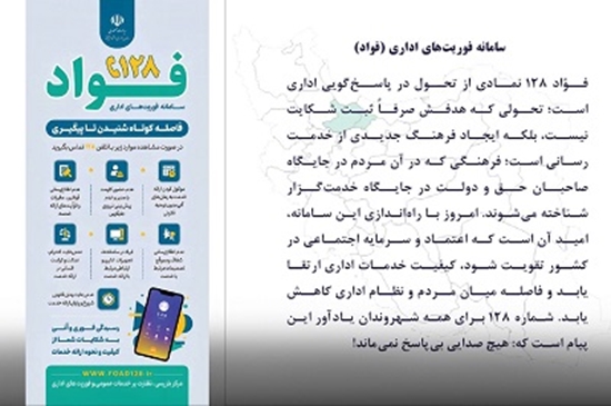 فؤاد ۱۲۸ نمادی از تحول در پاسخگویی اداری است؛ تحولی که هدفش صرفاً ثبت شکایت نیست، بلکه ایجاد فرهنگ جدیدی از خدمترسانی است؛ فرهنگی که در آن مردم در جایگاه صاحبان حق و دولت در جایگاه خدمتگزار شناخته میشوند. امروز با راهاندازی این سامانه، امید آن است که اعتماد و سرمایه اجتماعی در کشور تقویت شود، کیفیت خدمات اداری ارتقا یابد و فاصله میان مردم و نظام اداری کاهش یابد. شماره ۱۲۸ برای همه شهروندان یادآور این پیام است که: هیچ صدایی بیپاسخ نمیماند!