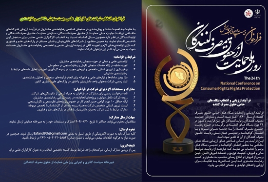 با عنایت به اهمیت دقت و روش‌مندی در سنجش شاخص رضایتمندی مشتریان در فرآیند ارزیابی شرکت‌های متقاضی دریافت جایزه ملی حمایت از حقوق مصرف‌کنندگان، سازمان حمایت حقوق مصرف‌کنندگان و تولیدکنندگان در نظر دارد همچون سـال گذشته، نسبت به انتخـاب کارگزاران علمی معتبر برای سنجش این شاخـص اقـدام نماید. به همین منظور، از شرکت‌های دانش‌بنیان و فناور مستقر در پارک‌های علم و فناوری که دارای توانمندی‌های لازم و تجربه کافی در زمینه ارزیابی علمی و تخصصی رضایتمندی مشتریان هستند، دعوت به عمل می‌آید تا در این فراخوان شرکت نمایند.